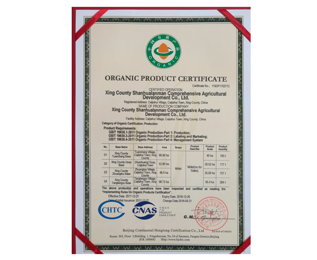 • 有機產品認證證書